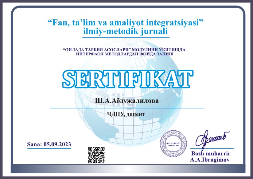 Vol. 4 No. 5 (2023): "Fan, ta'lim va amaliyot integratsiyasi" ilmiy-metodik jurnali